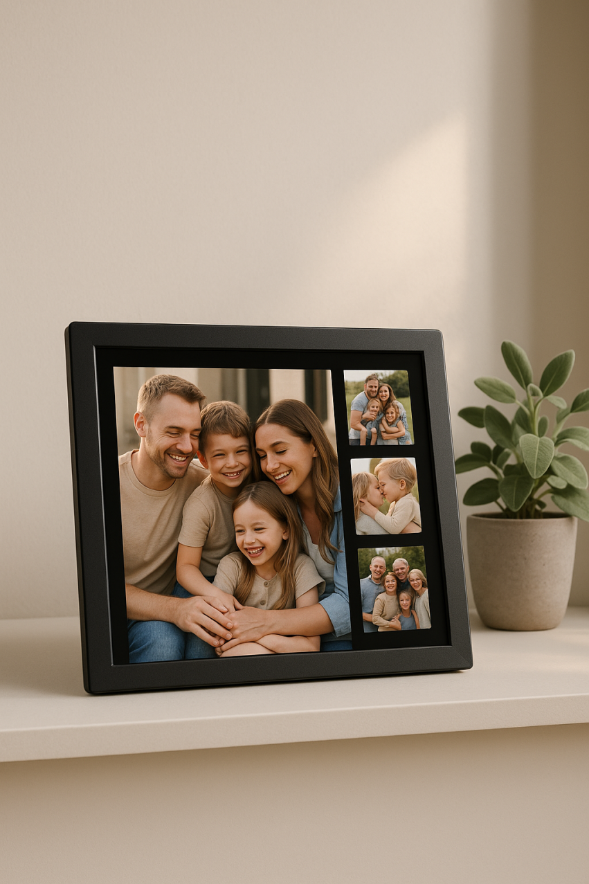 A digital picture frame preloaded with family photos